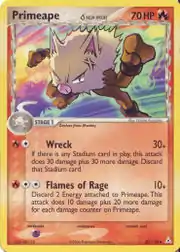 Primeape δ (Japanese: オコリザル δ Okorizaru δ) is a Fire-type Stage 1 Pokémon card. It is part of the EX Holon Phantoms expansion.