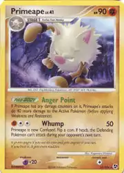 Primeape (Japanese: オコリザル Okorizaru) is a Fighting-type Stage 1 Pokémon card. It is part of the Great Encounters expansion.