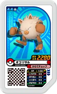 Primeape (Japanese: オコリザル Okorizaru) is a Grade 2 Pokémon Ga-Olé disk. It is part of the third Ultra Legend set.