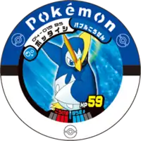 Prinplup (Japanese: ポッタイシ Pottaishi) is a Pokémon Battrio puck. It is part of the Mysterious Mew expansion.