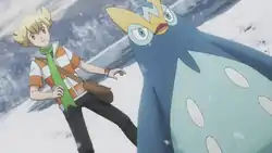 Prinplup makes a brief appearance after Hareta's Piplup evolves after its Everstone is removed in (Violent) Earthquake! Cyrus's Consuming Ambition. It then quickly evolves into Empoleon.