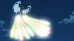 The prisms at Dawn Wings Necrozma's arms glow white and it fires multicolored lasers from them at the opponent. | ||