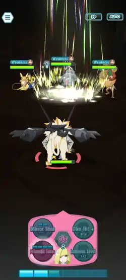 Dusk Mane Necrozma fires multicolored lasers from the prisms on its body at the opponent. | ||