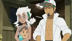 In That New Old Gang of Mine!, Burnet greeted Ash and Goh upon their arrival in Alola and introduced them to her newborn son Lei.