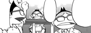 Professor Cozmo's assistants are characters in the Pokémon Adventures manga. They work as researchers, aiding Professor Cozmo in his laboratory in Fallarbor Town. Individually, their names are (Japanese: ワタスケ Watasuke), (Japanese: クウタ Kūta), and (Japanese: ノンキチ Nonkichi).[1]