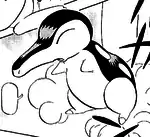 Gold was loaned a Cyndaquil to get back the Totodile Silver stole in the lab. However, as Gold went out on his journey, he kept the Cyndaquil and nicknamed it Exbo (Japanese: バクたろう Baktaro). | ||