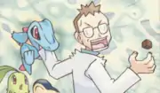 In Lapras of Luxury, Elm contacted Ash to congratulate him on getting eight Johto Badges. He then sent him on an errand to retrieve an Egg from the nearby Marine Pokémon Laboratory. As the head of the Pokémon Preservation Council, Elm had received news of the Egg after it had been poached from Mt. Silver. Ash and his friends obtained the Egg from Naomi and went on their way towards New Bark Town.
