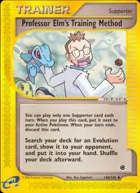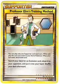 Professor Elm's Training Method (Japanese: ウツギはかせの育てかた Dr. Utsugi's Raising Method) is a Supporter card. It was first released as part of the Expedition Base Set.