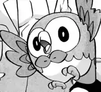 Rowlet originally belonged to Professor Kukui. He was first seen being used to test out moves alongside Popplio. He was given to Moon after seeing how he bonded with her. | ||