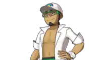 Professor Kukui (Japanese: ククイ博士 Dr. Kukui) is a Pokémon Professor from the Alola region, as well as the founder of Alola's Pokémon League. He is the only character in the games to have the Trainer class Pro Wrestler (Japanese: プロレスラー Pro Wrestler) under the alias the Masked Royal (Japanese: ロイヤルマスク Royal Mask). He specializes in Pokémon attacks.