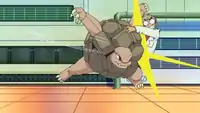 | DP108 | Machoke | Easy | What is the power-suppressing belt around Machoke's waist called? A. Champion Belt |