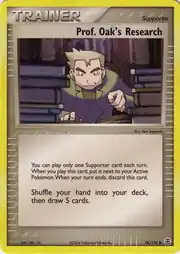 Professor Oak's Research (Japanese: オーキドはかせの研究 Dr. Okido's Research) is a Supporter card. It was first released as part of the Expedition Base Set.