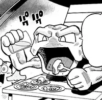Professor Oak becomes the host of a Pokémon curry competition between Red and Green in Whose Curry is the Most Delicious?. During the competition, he tries out one of Red's meals only to get a shocking surprise which contained a Voltorb.