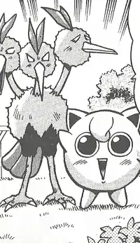 | Dodrio appeared with a Jigglypuff where they were in a singing show at the zoo. Clefairy, using his conductor stick, had the Dodrio twist their necks but they were twisted too hard.