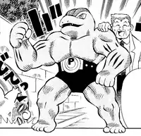 | Poliwrath first appeared when it was being lifted in the air by Blastoise's cannons in the zoo. It was one of the Pokémon rounded up by Clefairy. Later, it was angry at him for burning down the zoo.