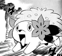 | When Professor Oak was buried in the sand, a Shaymin went up to him. It took a liking to Professor Oak. | ||