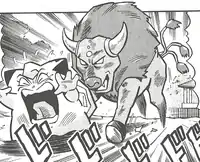 | While Clefairy was cleaning up the litter in the zoo, part of the broom broke and was sent flying to a Tauros. This made Tauros mad and chased Clefairy. He attacks Clefairy and Clefairy gets slammed into a building. Later, Tauros becomes angry at him for burning down a zoo.