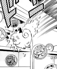 In Marill's Special Training to Surpass Pikachu!!, Professor Oak was eating his lunch and then it disappeared 5 seconds later. He gets upset at Professor Elm but finds out that a Marill was the one who took his lunch. Both professors put this aside and Professor Oak decides to catch the Marill. In Where is Chikorita?!, it is revealed that Green took the only Pokémon that Professor Oak did not give away, Chikorita. However, Chikorita was given back to him in the end of the chapter. In Messing up the Farm!!, Professor Oak takes on Giovanni and his twin brother as they stole five Miltank. After the two bad guys's plans were foiled, he ends up taking the Miltank under his ownership.