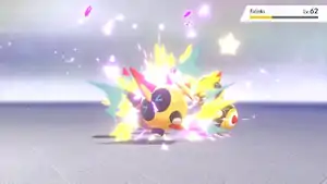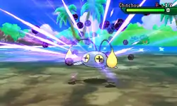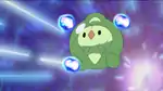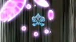 Duosion crouches its body together and three thick masses of light blue, blue, and purple energy forms around the front of its body. Duosion then fires the masses at the opponent, one after the other. | ||