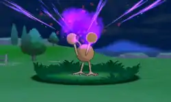 | Meditite forms a ring of purple masses of energy in front of its body. Meditite then fires the masses at the opponent, one after the other. | |||