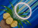 Exeggutor's eyes glow green and it bends down, firing a white ring at the opponent from the middle of its leaves. | ||