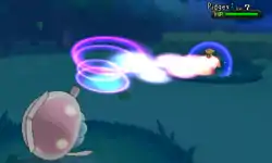 | Chimecho's body becomes outlined in light blue and it releases multiple light blue rings from its mouth at the opponent. | |||