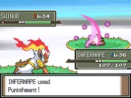 In Explorers of Time, Darkness and Sky, Punishment is a move with 1 base power, 88% accuracy, and 8 PP. The user attacks enemy in the front. This move's power increases by the number of stat boosts the target has, up to 10 boosts, ignoring any Defense boosts the target has when calculating the damage.