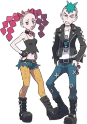 A Punk Couple (Japanese: ふりょうアベック Bad Couple) is a pair of Pokémon Trainers introduced in Generation VI. A Punk Couple is made up of a Punk Girl and a Punk Guy who can challenge the player to a Double Battle. Their Generation VII equivalent is a Punk Pair. There is only one Punk Couple in the games they appear in.