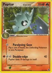 Pupitar δ (Japanese: サナギラス δ Sanagiras δ) is a Fire-type Stage 1 Pokémon card. It is part of the EX Delta Species expansion.