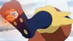 Cinderace repeatedly kicks a rock, igniting it into a flaming soccer ball. It then kicks the fire ball, launching it at the opponent. Cinderace can also kick the rock muliple times in sucession, making the Pyro Ball bigger each time it is struck, before launching it. | ||