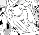 Eevee runs quickly and tackles its foes in a blur motion, leaving behind a trail of light. | ||