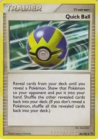 The Quick Ball, released in the Mysterious Treasures expansion, allows the player to uncover cards from their deck until they find a Pokémon. Its effect is similar to the Fast Ball.