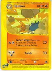 Quilava (Japanese: マグマラシ Magmarashi) is a Fire-type Stage 1 Pokémon card. It is part of the Expedition Base Set.