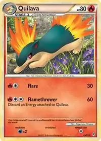 Quilava (Japanese: マグマラシ Magmarashi) is a Fire-type Stage 1 Pokémon card. It was first released as part of the HeartGold & SoulSilver expansion.