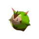 Quilladin is a bipedal, mammalian Pokémon with some plantlike features. Most of its body is covered by a green, armor-like shell similar to a chestnut. The shell covers everything except its face, lower body and legs, and the undersides of its arms. The visible parts of its body are dark brown, except for its lighter face. The face has dark, oval eyes, a small, pink nose on a pointed snout, a dark brown, sideways triangle on each cheek, rodent-like incisors, and a three-pointed patch of dark brown fur on its forehead. On either side of its head is a large, ear-like spike with reddish tips. Its tail also has a reddish tip. Its shell is banded over its arms and on its back, and the fur on its lower body creates a three-pointed pattern on its front. Quilladin has three white, clawed digits on its hands and two on its feet.