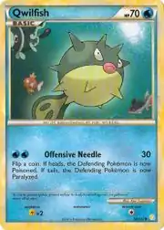 Qwilfish (Japanese: ハリーセン Harysen) is a Water-type Basic Pokémon card. It is part of the HeartGold & SoulSilver expansion.
