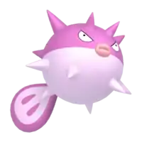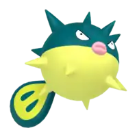 In order to attack, Qwilfish drinks over 2.6 gallons of water to inflate its body. It then uses the water pressure to shoot poisonous quills at its foe, which can cause fainting. Due to its round body, Qwilfish is not a great swimmer, and when filled with water it is even harder for it to swim.