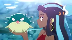 In Buddy, a Qwilfish puffed itself up in Nessa's hand. In Early-Evening Waves, it was revealed to have done this during one of Nessa's photoshoots.