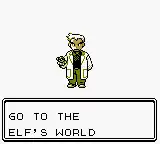 A poorly translated version of Professor Oak's opening speech; Pokémon are consistently referred to as "elf(s)" throughout the game