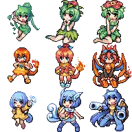 Moemon (short for "Moekko Monsters", 萌え擬人化 ) is a prominent hack of Pokémon FireRed that changes all Pokémon into gijinka. It is a simple change of FireRed, but with additions such as the ability to catch the three starters, Eevee, and a mix of both LeafGreen and FireRed Pokémon (thus making it simpler to obtain all Pokémon). The game still receives a fair amount of attention, as a patch was released solely for the FireRed hack that updated both the sprites of the Pokémon as well as their menu sprites, functioning like DLC would for any game.