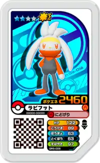 Raboot (Japanese: ラビフット Rabbifuto) is a Grade 2 Pokémon Ga-Olé disk. It is part of the fifth Grand Rush set.
