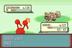 Rage deals damage and it will not be possible for the player to do anything other than let the user continue to use Rage, and it will not stop using Rage until it faints or the battle ends. Every time the user is damaged by an attack or is targeted by Disable, its rage will build, causing its Attack stat to increase by one stage. Being hit by a multi-hit move will raise the user's Attack once for each hit. Rage will use 1 PP when selected, but not use any PP on any subsequent turns.