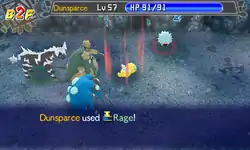 In the Rescue Team and Explorers games, Rage does not deal damage. Instead, it gives the user the Enraged status, which boosts its Attack stat by one level every time it takes damage. The move has 22PP and being a non-damaging move, is affected by Taunt.