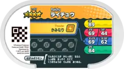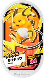 Raichu (Japanese: ライチュウ Raichu) is a Grade 4 Pokémon Mezastar tag. It is part of the first set.