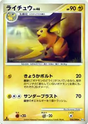 Raichu (Japanese: ライチュウ Raichu) is a Lightning-type Stage 1 Pokémon card. It is part of the Arceus expansion.
