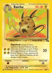 Raichu (Japanese: ライチュウ Raichu) is a Lightning-type Stage 1 Pokémon card. It is part of the Fossil expansion.