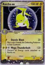 Raichu ex (Japanese: ライチュウex Raichu ex) is a Lightning-type Stage 1 Pokémon-ex card. It is part of the EX Sandstorm expansion.