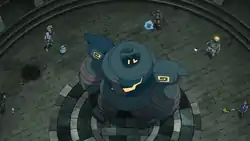 Another Raid Battle took place in Raid Battle in The Ruins!, where Ash, Goh, Kira, the excavation leader, and Shane Seeker participated in one against a giant Golurk in the Colossus Ruins. After Golurk was defeated, it was caught by Goh.