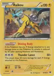 Raikou (Japanese: ライコウ Raikou) is a Lightning-type Basic Pokémon card. It was first released as part of the BREAKthrough expansion.