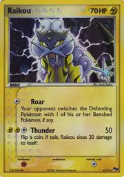 Raikou (Japanese: ライコウ Raikou) is a Lightning-type Basic Pokémon card. It is part of POP Series 2.
